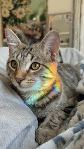 This is my kitten Steven as mentioned above. He truly is one of a kind. My family, we are passionate cat people and love everything about them. He is our 4th kitten we have brought home and his breed arises from Bengal and Maine Coone cats! A unique but common tabby style called blotched tabbies. He is six months old and already so sassy and playful!
